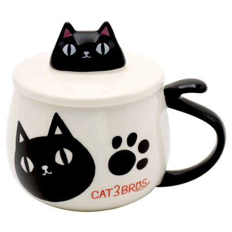 猫3兄弟 蓋付顔マグカップ