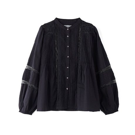 ハンサムでカチッとした印象になりがちなシャツブラウスも、ピンタックとレースの組み合わせで柔らかく可愛らしい雰囲気に!