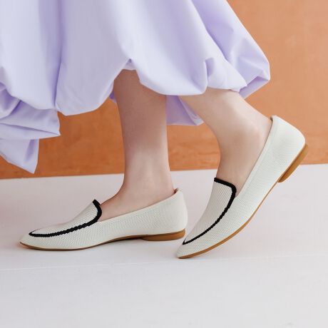 ニット素材を使用した洗えるパンプスがHIMIKOからデビュー!ソフトなニットが甲部分まで覆うオペラフラットパンプス。バイカラーデザインが足元のアクセントになる一足です。