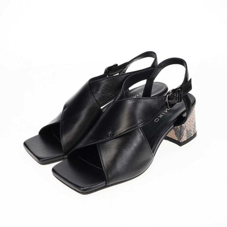 バックル下にゴムを施しているため、脱ぎ履きしやすいのも嬉しいポイントです。 ブラックとベージュのヒール部分にはパイソン柄レザーを使用し、ブルー/Cにはビンテージデニムのような風合いに仕上げた牛革レザーを採用。 モード感と女性らしさを兼ね備え、見た目以上に快適な履き心地を叶える一足です。