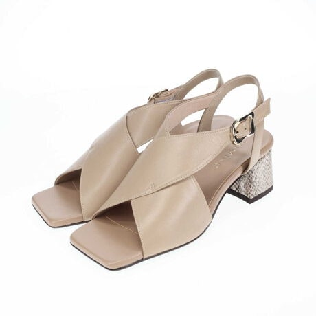 バックル下にゴムを施しているため、脱ぎ履きしやすいのも嬉しいポイントです。 ブラックとベージュのヒール部分にはパイソン柄レザーを使用し、ブルー/Cにはビンテージデニムのような風合いに仕上げた牛革レザーを採用。 モード感と女性らしさを兼ね備え、見た目以上に快適な履き心地を叶える一足です。