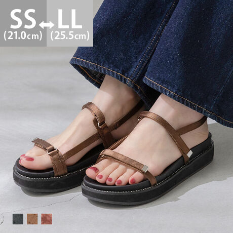SSはストラップを少しゆるく調整して履けるが、足長がきつく、足がソールから約5mmはみ出る。