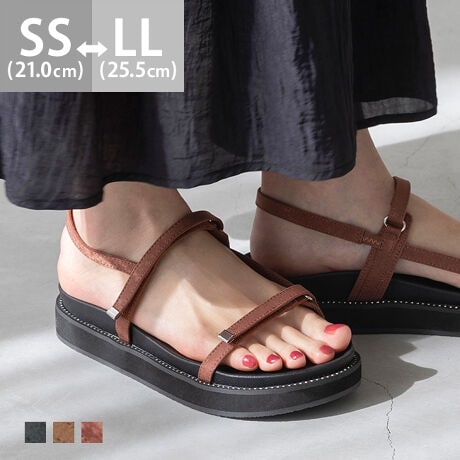 SSはストラップを少しゆるく調整して履けるが、足長がきつく、足がソールから約5mmはみ出る。