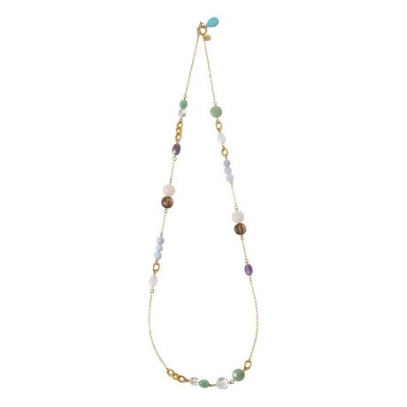 [型番:P6V06793__]ハウライト・アメジスト・アゲート・クォーツなど、表情の異なる天然石を贅沢にミックスしたロングネックレスそれぞれの石が持つ自然な色合いと質感が重なり合い、単色にはない奥行きと華やかさを演出します。ロング丈の縦ラインが装いをすっきりと見せ、シンプルなスタイリングにさっと合わせるだけで印象を引き締めます。※この商品はサンプルでの撮影を行っています。実際の商品とイメージ、仕様が異なる場合がございます。