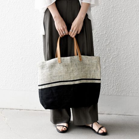 《予約》TARANGO: ライン デザイン ジュート ビッグ トート(A4対応)