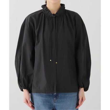 ・程よく甘さを加えたフリルネックデザインのブルゾン。