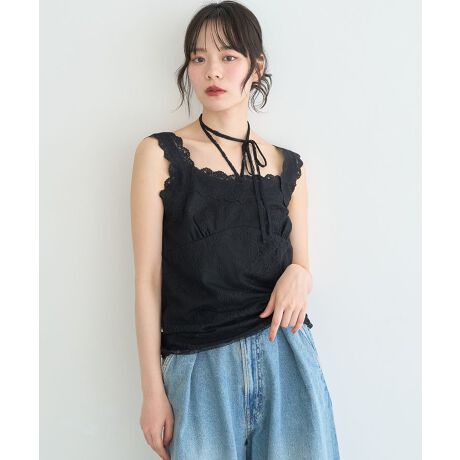 繊細レースで魅せる、大人可愛いホルターデザイン繊細な総レース素材が印象的なキャミソールです。やわらかなレースが上品な雰囲気を演出し、シンプルなコーディネートにもさりげない華やかさをプラスしてくれます。ホルターネックデザインがデコルテラインをきれいに見せ、女性らしいシルエットを引き立ててくれるのが魅力です。背中のマルチリボンは結び方をアレンジできるため、スタイリングに合わせて印象を変えられるのもうれしいポイントです。インナーとしてトップスやシアーアイテムと重ねれば、レースがアクセントになりコーディネートに奥行きをプラスします。タンクトップ感覚で着用できるため着回しやすく、デニムやスカートなどさまざまなアイテムと相性良く合わせられます。普段のカジュアルスタイルにやさしい女性らしさを添えてくれる、着回し力の高いアイテムです。透け感[ややあり]