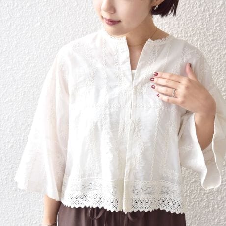 繊細な刺繍とレースを組み合わせた パッチワーク風羽織ブラウス