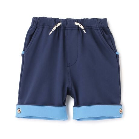 後ろ脇にほどこした大きなポケットが印象的なハーフパンツです。カラーによってデザインの異なるアソート展開。脇裾のボタンで折り返すと、お好みの丈感に調整できます。ウエストはホールゴム仕様で、簡単にサイズを変えられるのも魅力です。内側にお名前を記入できるタグがついています。【おすすめの着用時期は春夏シーズン】
