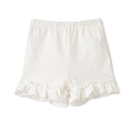 表面変化のあるジャカード天竺を使用した、1分丈のレギンスです。裾にはフリルをあしらい、愛らしいアクセントをプラスしました。インナーパンツとしてはもちろん、ワンピースやチュニックとのレイヤードもおすすめです。【おすすめの着用時期は春夏シーズン】