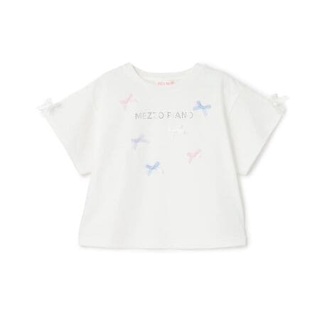 ジェラートカラーの可愛い立体リボンをたくさんちりばめた半袖Tシャツです。
