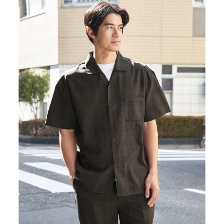 多機能素材が魅力のオープンカラーシャツ。