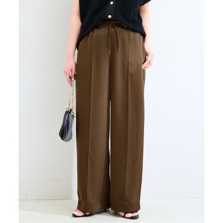 上品な光沢感が魅力のサテン素材ワイドパンツ。