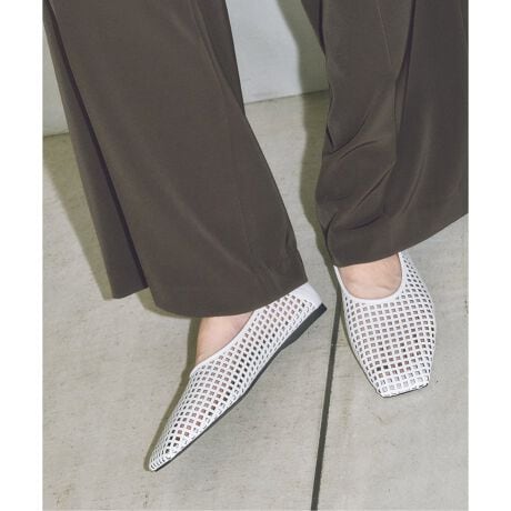 レーザーカットで施したカッティングが目を引くフラットシューズ。
