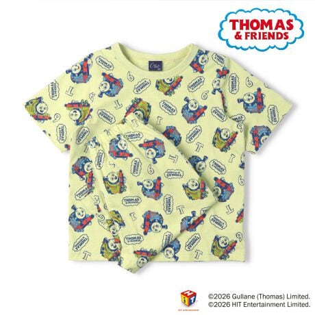crescentから人気の「きかんしゃトーマス」デザインアイテムが登場。トーマス、パーシーの総柄が可愛い!Tシャツ素材の半袖Tシャツとハーフパンツのセットのパジャマ。綿100%でギフトやプレゼントにもオススメ!(ベビーサイズのみTシャツの脇のボタンとパンツの脇のボタンホールにボタンをとめて着れば、お腹が出にくい仕様になっています。)【アイテム】トップス ボトムス カジュアル お洒落 オシャレ かっこいい かわいい 可愛い 普段着 デイリーウェア トップス ボトムス 寝巻 ルームウェア 子ども こども 男児 男の子 ボーイズ キッズ ベビーサイズ トドラーサイズ 幼稚園 保育園 小学校 小学生 2026年春夏物新作 丸高衣料 贈り物 ギフト プレゼント 帰省 お泊り会 旅行 キャラクター グリーン 緑色 ブルー 青色 クレセント コットン100% 綿100%