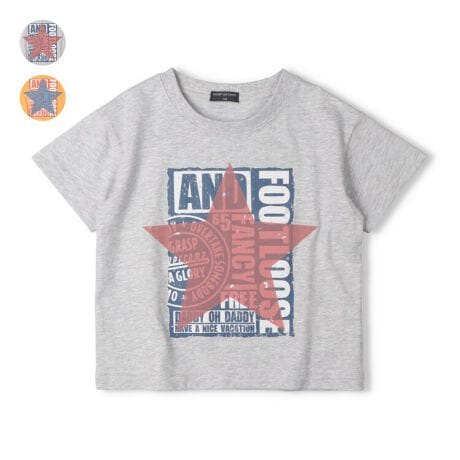 ロゴのプリントに立体感のある星のフロッキープリントがポイント!綿100%でデイリー使いにオススメな半袖Tシャツ。【アイテム】トップス カジュアル お洒落 オシャレ かっこいい かわいい 可愛い 普段着 デイリーウェア お出かけ着 お外着 お外遊び着 子ども服 こども服 男児 男の子 ボーイズ キッズ トドラーサイズ 幼稚園 保育園 小学校 通園 通学 小学生 2026年春夏物新作 丸高衣料 中学校 中学生 高校生 修学旅行 林間学校 校外学習 遠足 ダディオダディ ジュニアサイズ スクールサイズ グレー 灰色 イエロー 黄色 コットン100% 綿100%