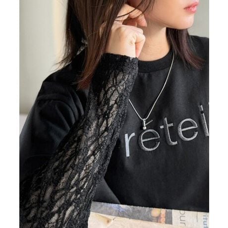 カジュアルなTシャツに繊細なレース袖を組み合わせ、重くなりすぎない軽やかな印象に仕上げました。