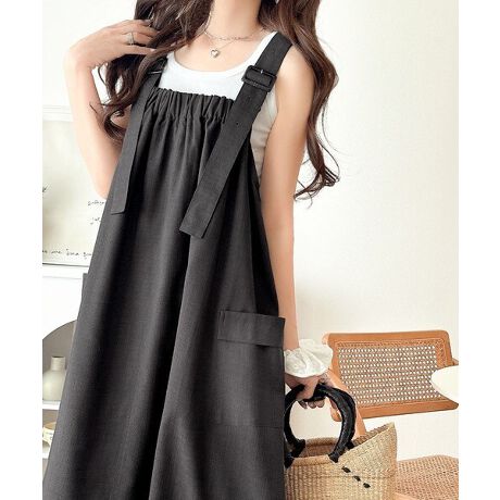 さらっと軽やかなリネンライク素材ジャンパースカート。