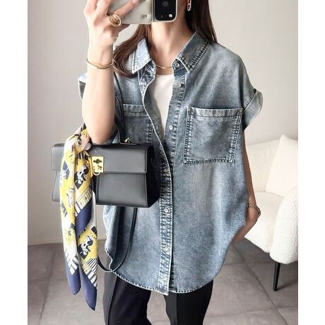 こなれ感抜群!大人のリラクシー「フレンチスリーブデニムシャツ」
