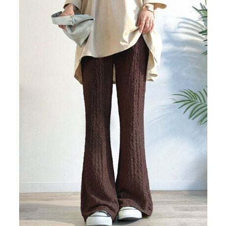 ゆるいフレアパンツデザインが、どんなテイストにも合わせやすく
