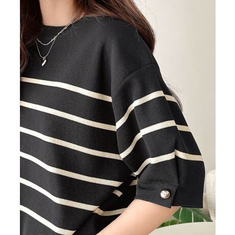 ミラノリブの編地が上品な印象のニットトップス。