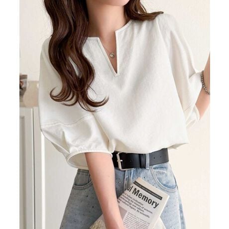 ふんわりスリーブで華奢見えを演出、大人のきれいめブラウスです。