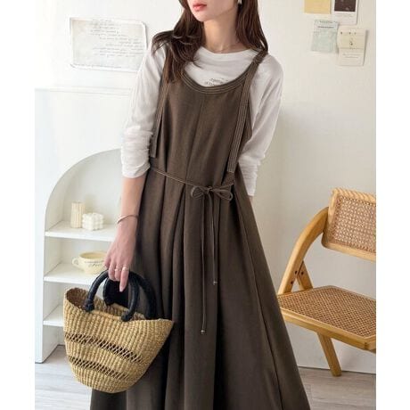 Tシャツから薄手のニットまで、季節に合わせたレイヤードスタイルが可能なキャミワンピース♪