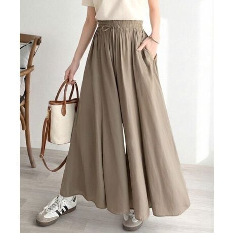 小物をアクセントにして楽しめる大人カジュアルなスカートパンツです。