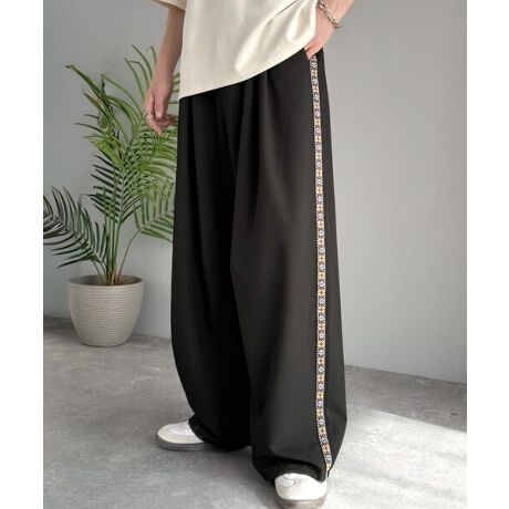 トレンド感のあるサイドラインが魅力のスラックスパンツ。