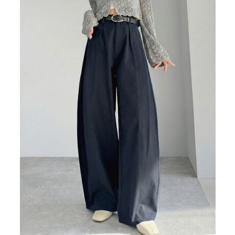立体感のあるシルエットに仕上げた着回しの効くタックパンツ◎