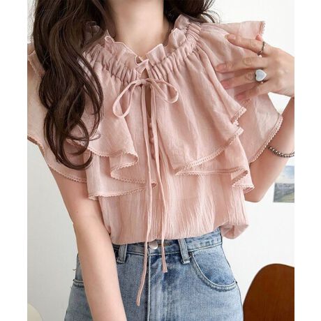 甘すぎない大人のラッフルフリルで360度どこから見ても可愛いブラウス。
