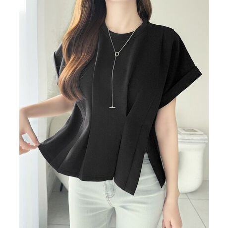 二の腕をカバーする絶妙な袖丈と、スリット入りの裾デザインが旬のこなれ感を演出♪