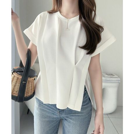 二の腕をカバーする絶妙な袖丈と、スリット入りの裾デザインが旬のこなれ感を演出♪
