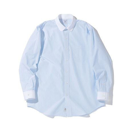 ラウンドカラーの丸みのあるカッティングと、男らしいボリューム感のあるシャツのフィットがギャップとなり、独特の色気を感じさせてくれるシャツとなっています。