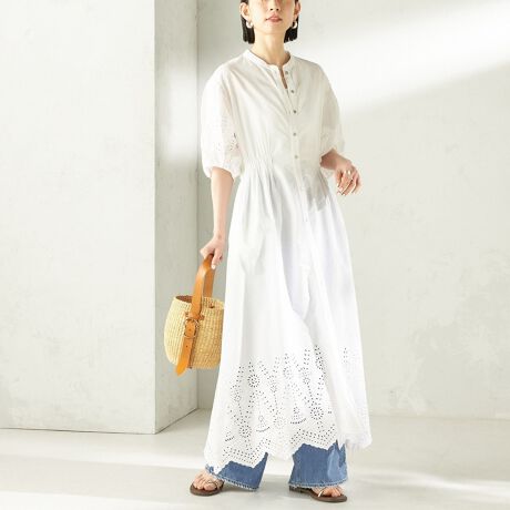 表情豊かなアイレット刺繍をあしらったワンピースです。