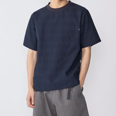 シンプルながらもシアサッカーの上品な生地感が、普段のTシャツとはまた違った雰囲気を出してくれる1枚です。