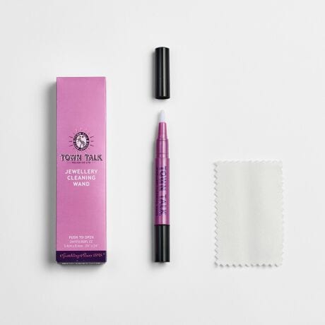 ペンタイプのジュエリークリーナー。ゴールド・プラチナ・シルバー・メッキ製品の透かしデザインや、ダイヤモンドのリングの裏側など、手が届かずお手入れが難しい箇所にはこちらがおすすめです。【使用手順】最初にキャップを外して、黒い部分を時計回りに回してください。ブラシの先端からクリーナー液が染み出してきたら、泡立てながらブラッシングを始めます。泡がジュエリーの細かな隙間まで入り込むように、丁寧に洗浄してください。ブラッシングが終わったら、うつわに入れた水で、クリーナー液をゆすぎます。リング裏側の隙間や透かし細工などには泡が残りやすいので、洗い残しがないかしっかりとチェックしましょう。ゆすぎ終えたら、マイクロファイバーなどのやわらかいクロスで、ジュエリーの水分を拭き取って、ケアは完了です。ブラシは先端に残ったクリーナー液を水でゆすいだ上、水分をしっかりと拭き取り、必ずキャップをして保管してください。※表面加工、マット加工、古美加工がされた製品にはご使用をお控えください。※ご使用の際は、商品のパッケージに記載された使用方法に従ってください。ただし、本商品には「シルバー製品への使用」に関する記載がございません。これは、TOWNTALKシリーズにおいてシルバー専用のスプレーが別途販売されているためであり、本商品がシルバー製品に使用できないという意味ではございません。そのため、当社では本商品をシルバー製品にも安心してご使用いただけるものとしてご案内しております。