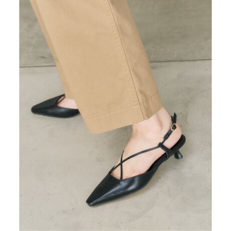 華奢なクロスコードが足元を美しく見せるストラップパンプス。