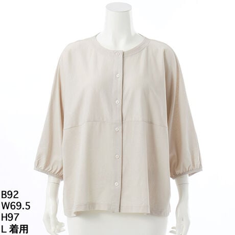 [型番:6702006]布帛の様に見えるカットソーのジョーゼット生地を使用。カットソーなのでバックに入れてもシワが付きにくく、伸縮性もあるので着心地が抜群です。ゆったりとしたドルマンスリーブの七分袖カーデです。アームホール部分がゆったりとしているので中に着たものがもたつきにくいです。グリーンノート 大きいサイズ レディース ゆったり 七分袖 伸縮性 ドルマンスリーブ