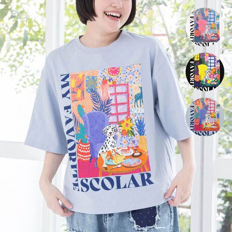 まるで一枚のアートのような、カラフルで遊び心あふれるルーム柄Tシャツです。