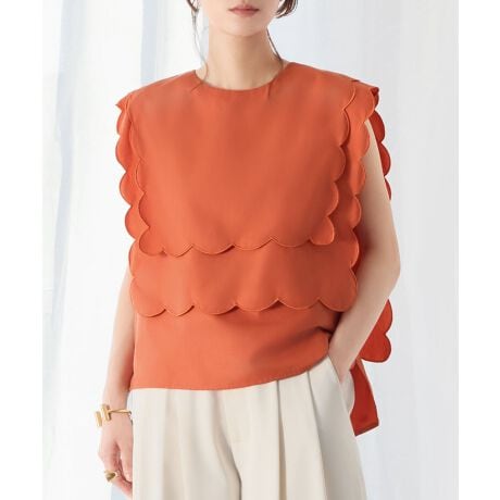 洗練された大人の女性にぴったりのスカラップのノースリーブブラウス。