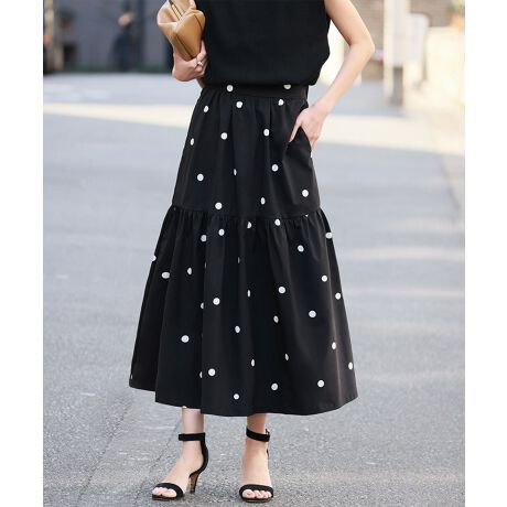ドットプリントロングティアードスカート