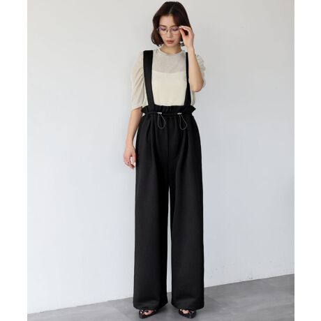 取り外し可能なストラップが付いており、マルチWAYで着こなしが楽しめるリラクシーなボトムス。