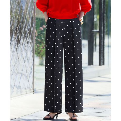 ハリ感と微光沢のある素材にドットプリントを施し、程よくゆったりとしたシルエットが特徴。