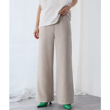 大人なこなれ感を演出してくれるラメスウェット素材のセミワイドパンツ。
