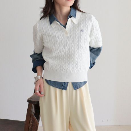 マルイウェブチャネル   /   トップス   /   ニット・セーター   /   【大人気シリーズの新型登場!】FR刺しゅうケーブル柄半袖ポロ衿プルオーバーニット