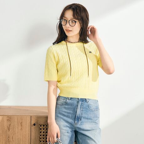 ・立体感のあるケーブル柄が魅力の半袖プルオーバー