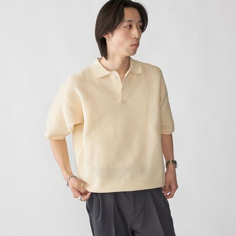 毎シーズン人気なポリエステル糸を使用した、軽くてソフトなニットポロプルオーバー。