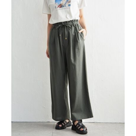 麻混ベルト付きイージーパンツ