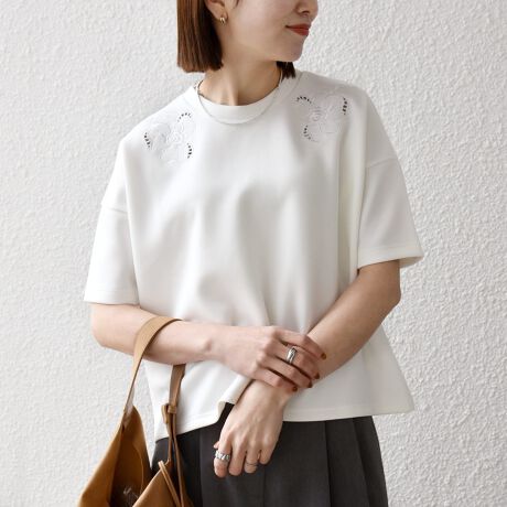 オリジナルのフラワー刺繍を施した、クルーネックのカットソー。